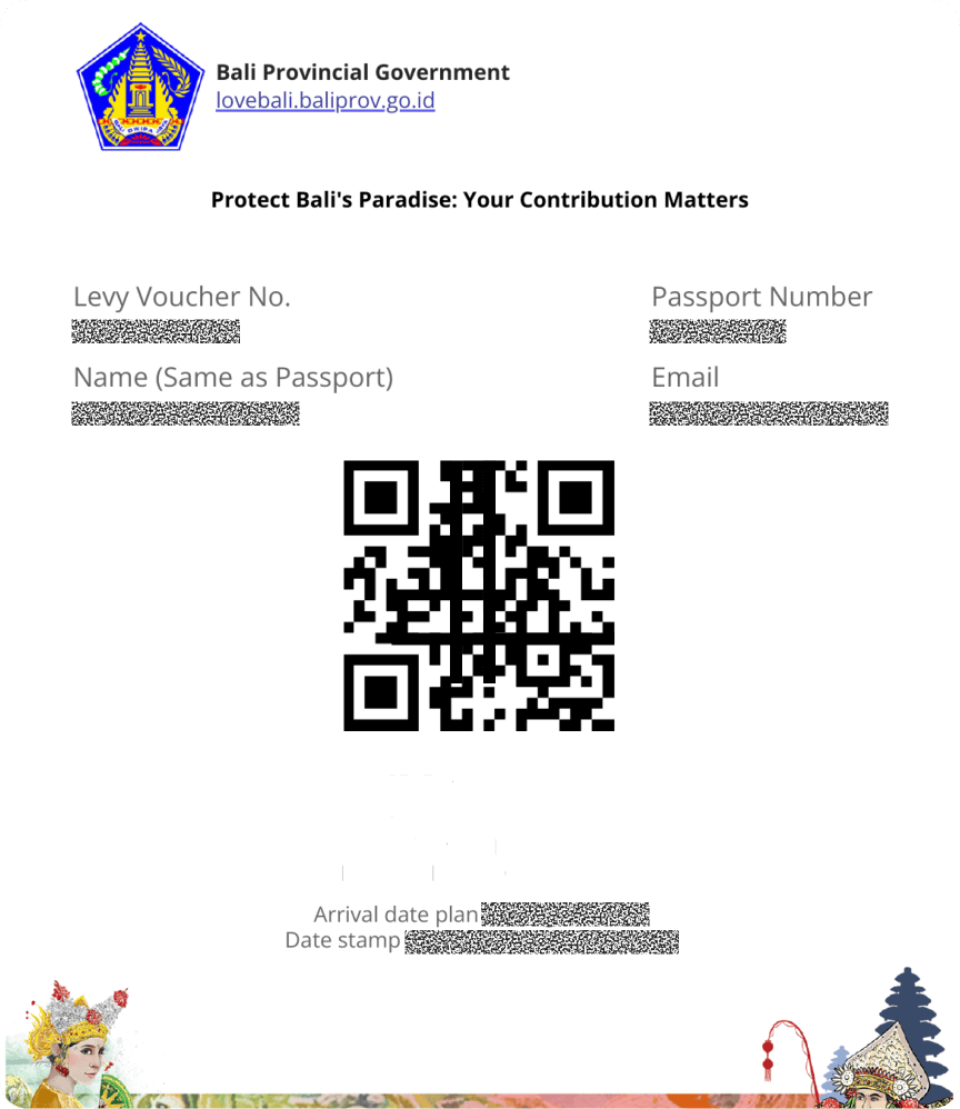 After payment, you'll receive a QR confirmation via email. Show it digitally or printed when entering Bali through airport or seaport immigration checkpoints.