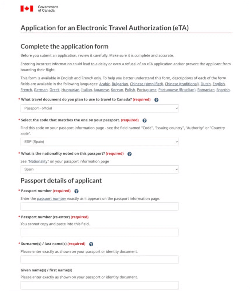 Apply for Canada eTA — Electronic Travel Authorization